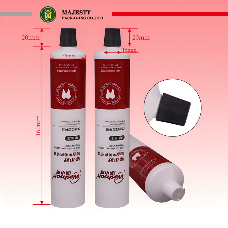 Aplicador de boquilla personalizado de 35mm de diámetro, tubo vacío de 50 ~ 130 ml de capacidad, tapón de rosca para tubo de pasta de dientes cosmética brillante